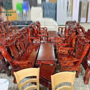 Thanh Lý Tồn Kho Bộ Salon Tràm Mặt Gõ Chạm Đào Tay 10