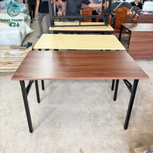 Chân bàn bằng sắt hoặc gỗ có khớp nối dạng bản lề dễ dàng gấp gọn, tiết kiệm không gian khi không sử dụng. Bàn làm việc gấp gọn được thiết kế hướng đến sự tiện lợi, linh hoạt và thông minh. Phù hợp văn phòng diện tích nhỏ, văn phòng di động, phòng đào tạo…
