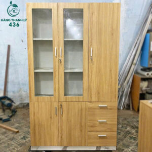Thanh Lý Tủ Hồ Sơ Gỗ MFC 1m83 Cánh Kính Mới 99%