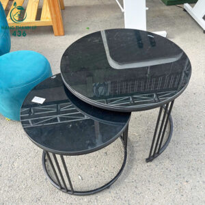 Bàn Trà Đôi Tròn Cũ Mặt Kính Đen Hiện Đại Đẹp Mắt