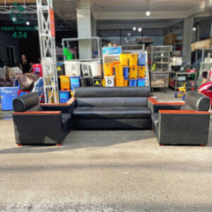 Bộ Sofa Văn Phòng Tiếp Khách Bọc Da Tay Ốp Gỗ Hiện Đại Cũ