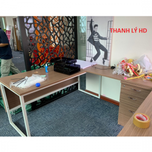 Thanh lý bàn làm việc cũ hình chữ L, màu nâu, có hộc – BLVC337