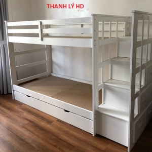 Thanh lý giường gỗ 2 tầng màu trắng cũ cao cấp – GC151