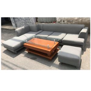 Thanh lý bộ sofa góc bọc vải màu xám tồn kho