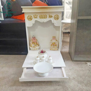 Bàn Thờ Ông Địa Gỗ Cũ Màu Trắng Kiểu Dáng Đơn Giản