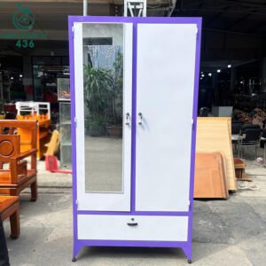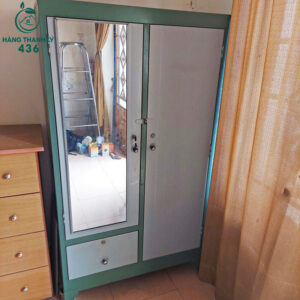 Tủ Quần Áo Sắt Cũ 1M76x1M16 Màu Nâu 3 Cánh Kèm Gương Lớn