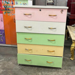 Bàn Trang Điểm Màu Đỏ Trắng Cũ 2 Hộc Kéo Kèm Gương Toàn Thân