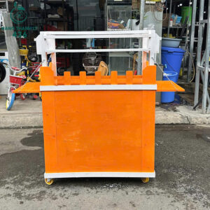 Xe Gỗ Bán Trà Sữa Cũ Không Mái Che Nhỏ Gọn Màu Cam Nổi Bật