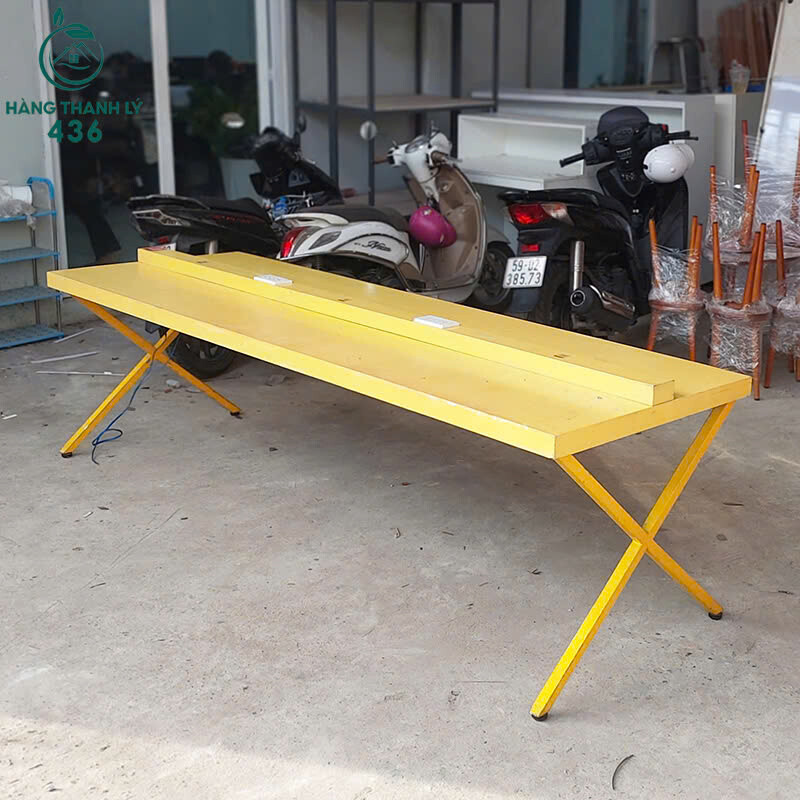 Bàn Ăn Cũ 2M4x80CMx75CM Sắt Sơn Màu Vàng Chắc Chắn
