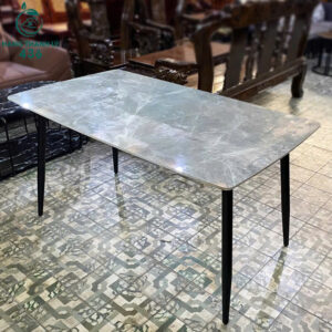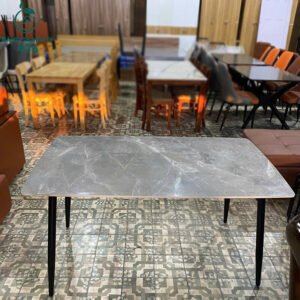 Mô tả: Mẫu bàn ăn mặt đá thiết kế dáng chữ nhật, mặt đá vân xám nhìn sạch và dễ phối nội thất. Mặt bàn phẳng, rộng rãi, thuận tiện cho sinh hoạt gia đình hoặc sử dụng trong quán ăn, căn hộ. Chân bàn sắt sơn đen tạo độ chắc chắn, đứng vững khi sử dụng hằng ngày. Kiểu dáng đơn giản, không chiếm nhiều diện tích, dễ bố trí trong nhiều không gian khác nhau.