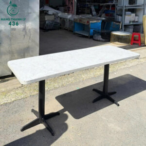 Bàn Bar Mặt Trắng Vân Đá Loang Chân Trụ 4 Chia Đen Cũ