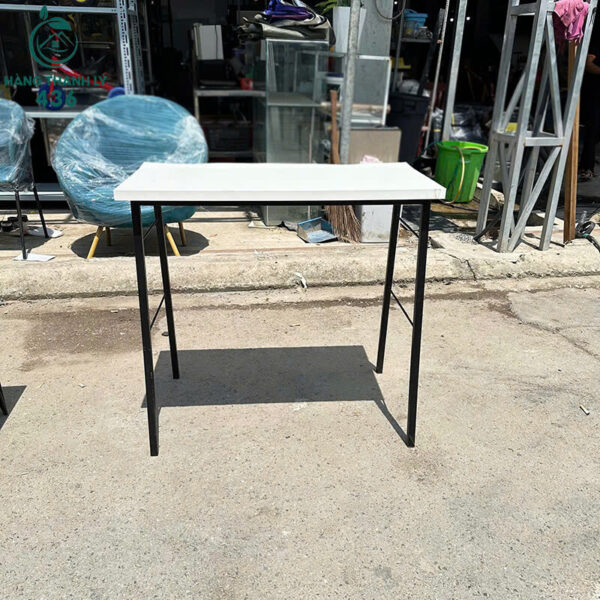 Bàn Cafe Cũ Chân Sắt Cao Mặt Gỗ Trắng Thiết Kế Đơn Giản