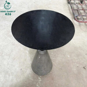 - Mô tả: Mẫu bàn cafe cũ với thiết kế độc đáo, kết hợp mặt bàn tròn sắt đen nhám cùng chân trụ hình nón làm từ xi măng đúc nguyên khối, tạo cảm giác vững chãi và nổi bật. Kiểu bàn này phù hợp với không gian sáng tạo hoặc cá tính riêng biệt. Mặt bàn đủ rộng dễ lau chùi và bền theo thời gian. Sản phẩm vừa chắc chắn vừa tạo điểm nhấn mạnh mẽ cho mọi không gian quán.
