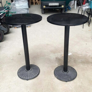 - Mô tả: Bàn cafe tròn nhỏ gọn, thích hợp dùng cho quán nước, trà sữa hoặc góc ban công. Mặt bàn tròn màu đen bóng, chất liệu cứng cáp, dễ lau chùi. Chân trụ sơn đen, đế tròn gang nặng đảm bảo bàn đứng vững, không rung lắc. Thiết kế đơn giản nhưng hiện đại, phù hợp ghép với nhiều mẫu ghế khác nhau. Di chuyển gọn nhẹ, thích hợp sử dụng cả trong nhà và ngoài trời có mái che.