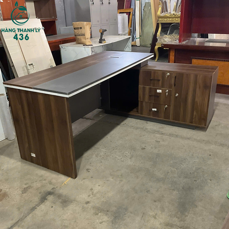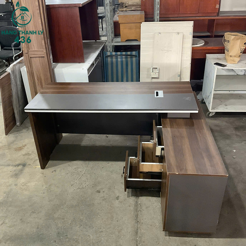 Bàn Giám Đốc Chữ L Cũ 1M6X70CMX1M4 Kèm Hộc Tủ