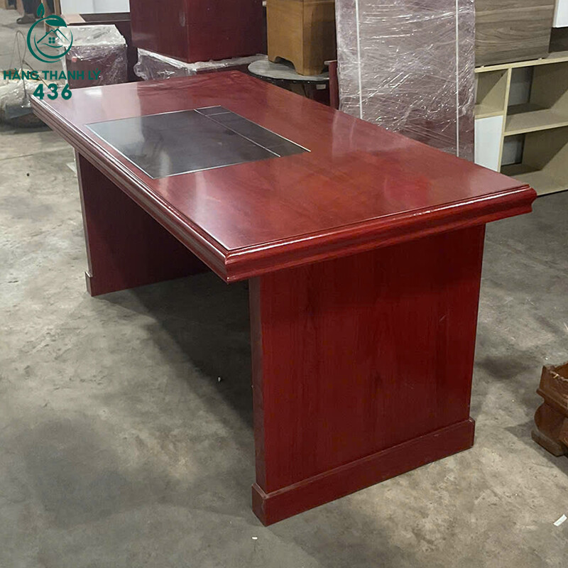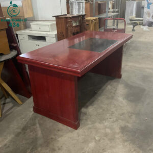 Mô tả: Khi sử dụng mẫu bàn này, bạn sẽ cảm nhận được sự chuyên nghiệp nhờ thiết kế vuông vức và màu sắc trầm ấm, uy quyền. Phần mặt kính đen tích hợp sẵn không chỉ sang trọng mà còn rất dễ vệ sinh, lau chùi sau mỗi ngày làm việc. Chiếc bàn này đặc biệt phù hợp cho những ai yêu thích sự ngăn nắp, bề thế vì mặt bàn đủ rộng để bạn đặt cả dàn máy tính, khay tài liệu và các vật phẩm phong thủy lớn. Dù là hàng cũ nhưng độ hoàn thiện từ nước sơn đến các chi tiết ốp gỗ vẫn còn rất đẹp, không có dấu hiệu bong tróc hay xuống cấp. Đây là giải pháp cực kỳ kinh tế để trang bị cho phòng sếp một diện mạo đẳng cấp mà không cần tốn quá nhiều chi phí đầu tư ban đầu.