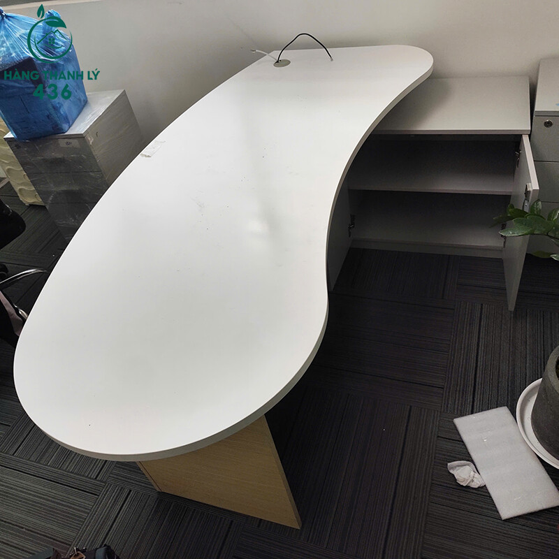 Thanh Lý Bàn Lãnh Đạo Dáng Bầu Dục Màu Trắng Mới 90%
