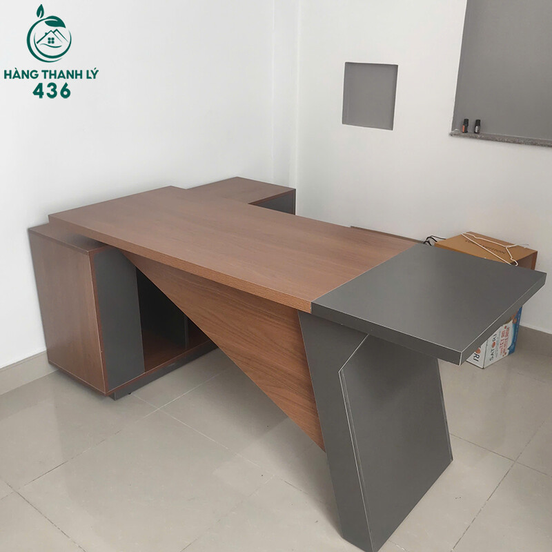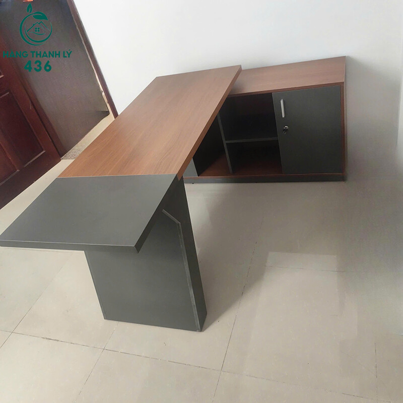 Mô tả: Mẫu bàn này phù hợp cho người cần không gian làm việc rộng và gọn gàng, đặc biệt là giám đốc, quản lý hoặc người làm việc tại nhà. Thiết kế chữ L giúp phân chia khu vực làm việc và lưu trữ rõ ràng, thuận tiện khi sử dụng hàng ngày. Tủ phụ đi kèm giúp cất giữ tài liệu, đồ cá nhân dễ dàng hơn. Bề mặt bàn dày, chắc chắn, chịu lực tốt và dễ lau chùi. Kiểu dáng hiện đại, phối màu gỗ và xám tạo cảm giác chuyên nghiệp, phù hợp nhiều không gian văn phòng khác nhau.