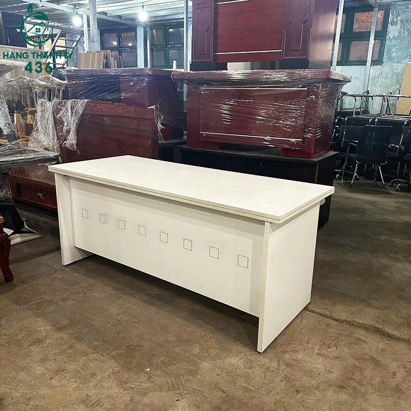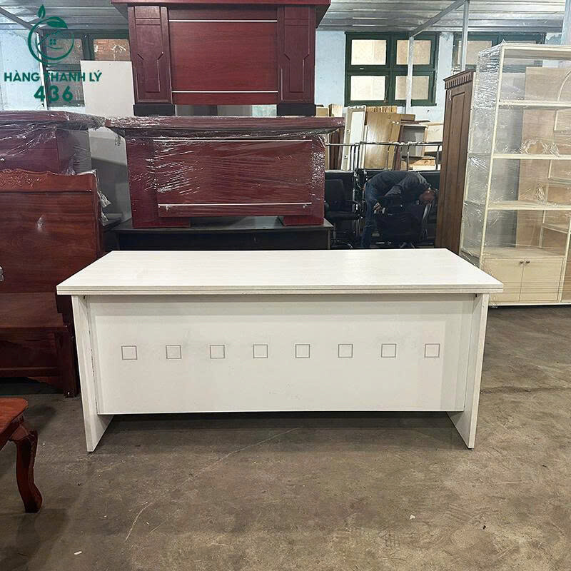 - Mô tả: Bàn giám đốc cũ được làm từ gỗ công nghiệp, thiết kế rộng rãi và chắc chắn. Mặt bàn phẳng, dễ dàng bố trí máy tính, giấy tờ và các vật dụng làm việc cần thiết. Phần chân bàn kín che chắn gọn gàng, phù hợp cho văn phòng giám đốc, trưởng phòng hoặc phòng làm việc riêng. Bề mặt bàn dễ lau chùi, hạn chế trầy xước nhẹ. Với thiết kế đơn giản nhưng hiện đại, bàn vừa đảm bảo tính thẩm mỹ, vừa mang lại sự tiện dụng.