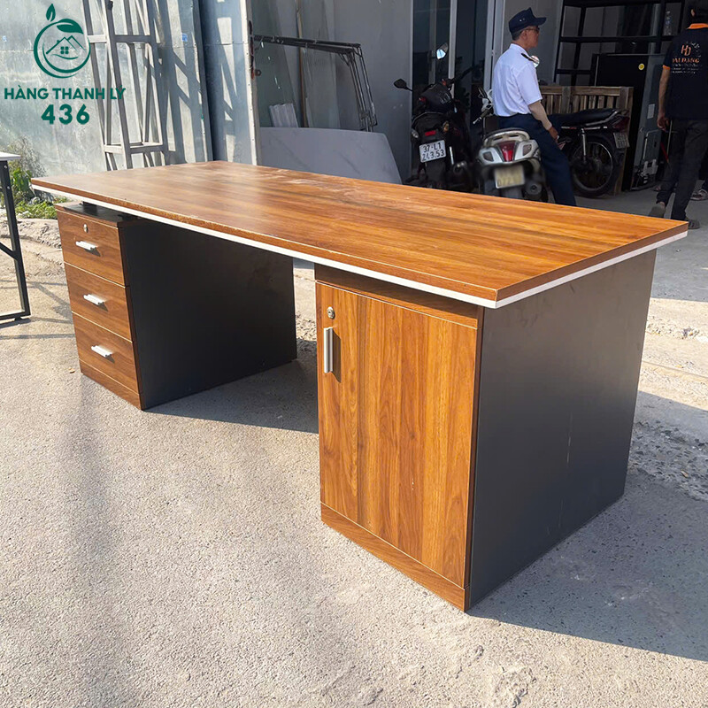 Mô tả: Bàn làm việc văn phòng gỗ cũ kích thước 2m với thiết kế thực tế, dễ sử dụng trong nhiều không gian làm việc khác nhau. Mặt bàn gỗ phẳng, chịu lực tốt, phù hợp đặt máy tính, hồ sơ và các thiết bị văn phòng. Bàn đi kèm hộc kéo và tủ cánh giúp lưu trữ tài liệu thuận tiện. Kiểu dáng đơn giản, màu vân gỗ dễ phối với các nội thất văn phòng khác.