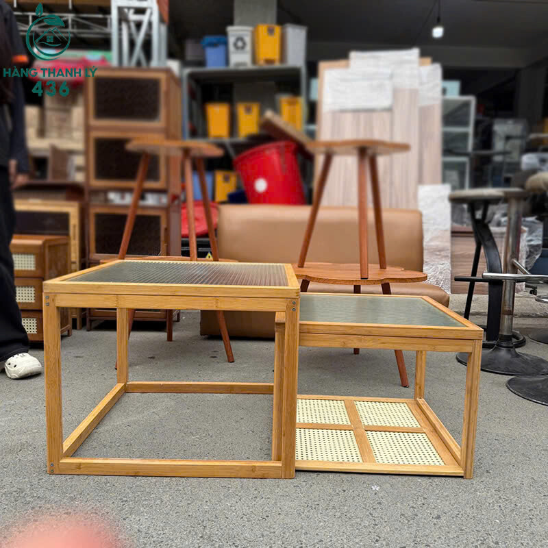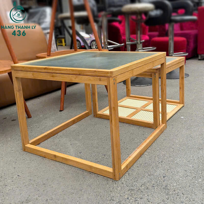 Bàn Gỗ Tre Cũ Mặt Kính Trang Trí Phong Cách Vintage
