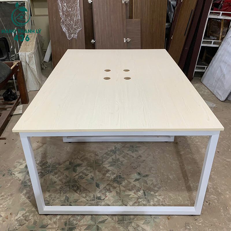 Bàn Họp 1M2X2MX75CM Màu Kem Chân Sắt Mới 99%