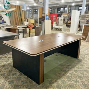- Mô tả: Bàn được làm từ gỗ công nghiệp MDF phủ Melamine. Gỗ công nghiệp MDF có độ bền cao, khả năng chịu lực tốt, dễ thi công và giá thành hợp lý. Mặt bàn được phủ Melamine có khả năng chống trầy xước, chống thấm nước và dễ dàng vệ sinh. Kiểu dáng độc đáo, chân trụ vững chắc mang lại thời gian sử dụng được bền lâu. Màu gỗ tươi sáng, hài hoà với mọi không gian phòng họp, nơi làm việc.