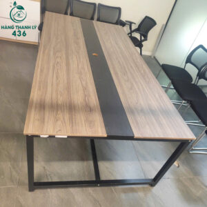 Mô tả: Bàn họp thiết kế dáng dài, phù hợp sử dụng cho phòng họp công ty, văn phòng hoặc phòng làm việc nhóm. Mặt bàn gỗ phủ vân đẹp, ở giữa phối dải màu nổi tạo điểm nhấn sang trọng, có lỗ đi dây điện tiện lợi cho máy tính và thiết bị họp. Kết cấu bàn chắc chắn, mặt phẳng rộng, ngồi được từ 6–8 ghế thoải mái.