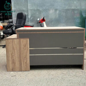 - Mô tả: Bàn làm việc cũ màu xám phối vân gỗ, thiết kế hiện đại, thích hợp cho nhân viên văn phòng, học sinh hoặc cửa hàng thời trang. Mặt bàn rộng, dễ sắp xếp máy tính và hồ sơ. Bên dưới có hộc tủ khóa an toàn, dùng để lưu trữ tài liệu, đồ cá nhân rất tiện lợi. Chất liệu gỗ, bền màu và dễ lau chùi. Gam màu xám phối nâu mang lại cảm giác sang trọng, chuyên nghiệp. Hàng còn mới khoảng 90%, chắc chắn, bền đẹp, dùng tốt ngay khi nhận.