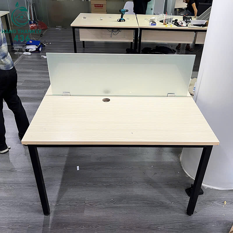 Bàn Làm Việc Cũ 1M2x1M2x75CM Kèm Vách Ngăn Kính Mờ