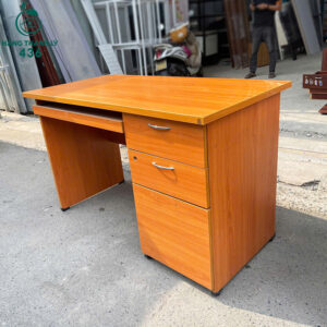 Mô tả: Bàn làm việc thiết kế tiện lợi với phần hộc tủ 3 ngăn giúp lưu trữ tài liệu, vật dụng cá nhân gọn gàng và dễ lấy khi cần. Mặt bàn rộng khoảng 1m2 đủ để đặt laptop, màn hình hoặc hồ sơ làm việc hằng ngày. Chất liệu gỗ công nghiệp có ưu điểm bề mặt phẳng, dễ vệ sinh và giá thành hợp lý, phù hợp nhu cầu sử dụng phổ thông . Kết cấu bàn chắc chắn, sử dụng ổn định, thích hợp cho văn phòng, phòng học hoặc làm việc tại nhà. Kiểu dáng đơn giản giúp dễ bố trí trong nhiều không gian khác nhau.