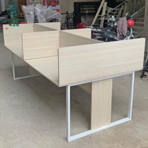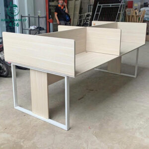 - Mô tả: Bàn làm việc nhóm thiết kế chia 4 ngăn, có vách ngăn trung tâm tạo không gian riêng tư, phù hợp bố trí tại các văn phòng nhỏ, phòng dự án hoặc trung tâm đào tạo. Kiểu dáng hiện đại, màu gỗ sáng cảm giác thoáng và dễ kết hợp với các loại ghế. Chân bàn khung chịu lực tốt, hạn chế rung lắc. Bề mặt bàn trơn láng, phù hợp để máy tính, giấy tờ, dụng cụ cá nhân. Dễ tháo lắp, tiện vận chuyển và linh hoạt trong bố trí không gian.