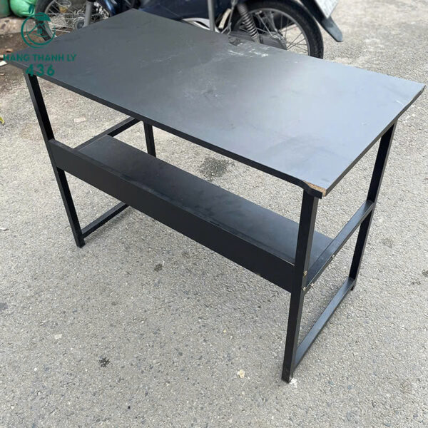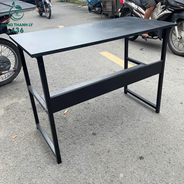 - Mô tả: Bàn làm việc cũ kiểu dáng tối giản, hiện đại, phù hợp cho không gian văn phòng, phòng học hoặc nhà trọ. Kết cấu khung sắt sơn tĩnh điện màu đen, chắc chắn, chịu lực tốt. Mặt bàn làm từ gỗ và dễ vệ sinh. Bên dưới có kệ lửng tiện lợi, sách hoặc vật dụng cá nhân gọn gàng. Thiết kế nhỏ gọn, dễ di chuyển, phù hợp cho không gian làm việc hoặc học tập có diện tích hạn chế. Hàng còn mới khoảng 90%, sử dụng tốt, giá thanh lý cực rẻ.