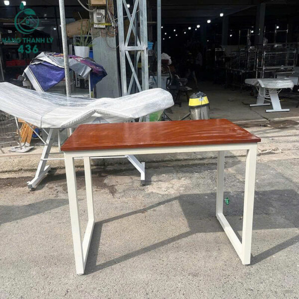 - Mô tả: Bàn làm việc cũ được thiết kế đơn giản nhưng tinh tế, với mặt gỗ màu nâu bóng sang trọng kết hợp chân sơn tĩnh điện trắng chắc chắn. Mẫu bàn này phù hợp dùng cho văn phòng, phòng học hoặc bàn làm việc cá nhân tại nhà. Mặt bàn phẳng, dễ lau chùi, chịu lực tốt, thích hợp đặt laptop, tài liệu và các vật dụng nhỏ. Chân bàn khung vuông vững chãi giúp bàn đứng cân đối, không rung lắc trong quá trình sử dụng. Hàng cũ còn mới khoảng 90%, bề mặt còn đẹp, không trầy xước nhiều.