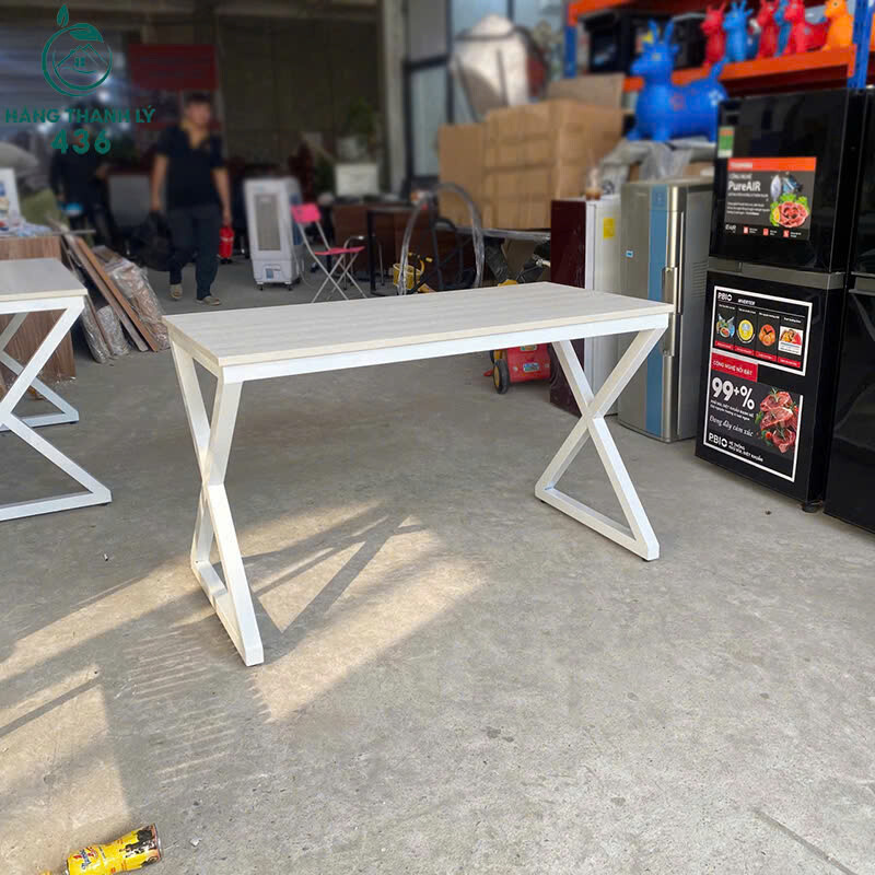 Bàn Làm Việc Cũ Chân Chữ X Gỗ Trắng Hiện Đại