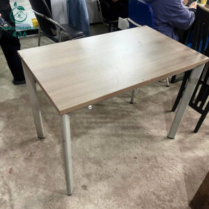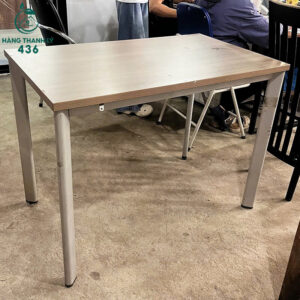 - Mô tả: Bàn làm việc cũ có thiết kế đơn giản, hiện đại với mặt bàn hình chữ nhật làm từ gỗ vân gỗ sáng màu, tạo cảm giác trang nhã và dễ lau chùi. Bốn chân bàn bằng kim loại trụ tròn sơn màu bạc, chắc chắn và có đệm cao su ở chân giúp chống trượt, bảo vệ sàn. Bàn phù hợp sử dụng trong văn phòng, phòng học hoặc không gian làm việc tại nhà. Mặt bàn vẫn còn mới dù đã qua sử dụng nhưng vẫn giữ được độ phẳng và ổn định.