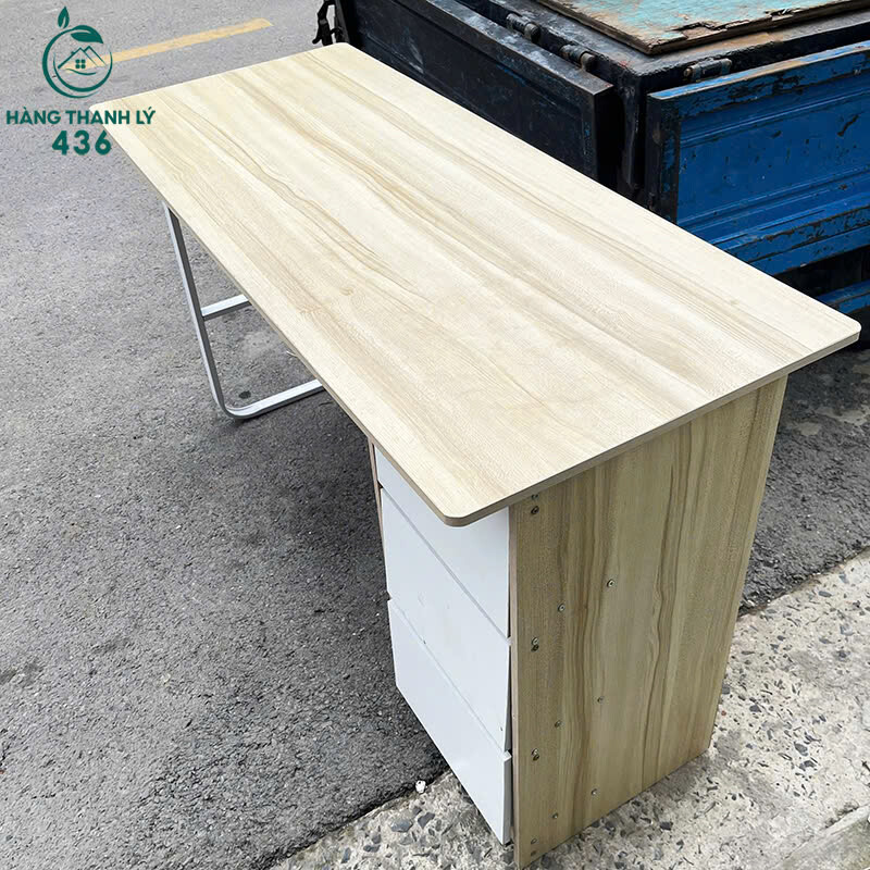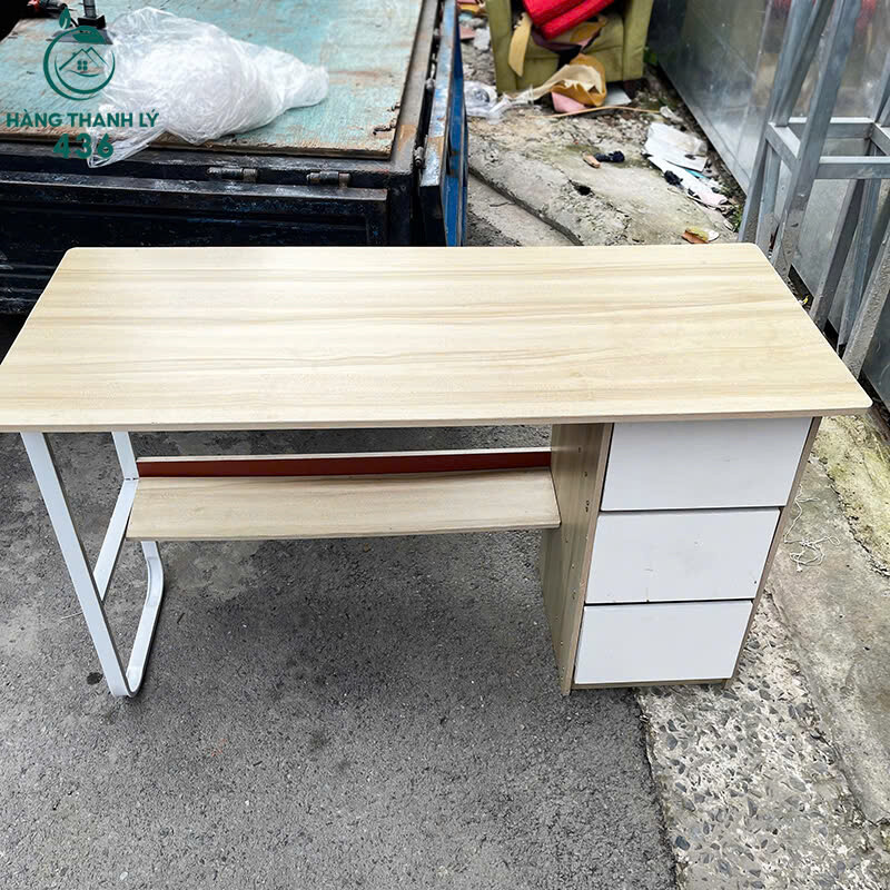 - Mô tả: Bàn làm việc cũ được thiết kế gọn gàng, phù hợp cho văn phòng nhỏ hoặc sử dụng tại nhà. Mặt bàn làm từ gỗ công nghiệp màu sáng, dễ lau chùi và mang lại cảm giác thoáng đãng cho không gian. Bên hông bàn có 3 ngăn tiện lợi, giúp lưu trữ giấy tờ, hồ sơ hoặc vật dụng cá nhân gọn gàng. Chân bàn làm bằng sắt sơn tĩnh điện, chắc chắn và bền bỉ theo thời gian.