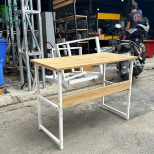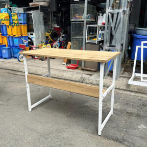 - Chất liệu: Mặt gỗ, chân kim loại