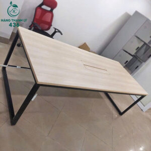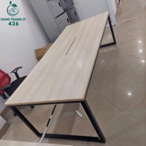- Mô tả: Bàn làm việc cũ chân sắt hộp sơn đen kiểu chữ U, mặt bàn gỗ màu sáng, dài rộng thoải mái cho 4 người ngồi làm việc cùng lúc. Giữa bàn có nắp luồn dây điện gọn gàng, giúp bố trí máy tính, dây nguồn thuận tiện hơn. Mặt bàn dày, phẳng, dễ vệ sinh, phù hợp sử dụng cho văn phòng hiện đại, startup hoặc phòng học nhóm. Kết cấu chân sắt chắc chắn, không rung lắc, khung gắn liền tạo sự ổn định khi sử dụng.