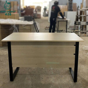 - Mô tả: Bàn làm việc với thiết kế đơn giản, hiện đại, phù hợp cho văn phòng, công ty hoặc sử dụng tại nhà. Mặt bàn gỗ sang trọng, chống trầy xước nhẹ, dễ lau chùi. Khung chân sắt chắc chắn, chịu lực tốt, giúp bàn luôn vững vàng khi sử dụng. Điểm cộng của bàn là được trang bị hộc tủ có ngăn kéo và cánh mở, tiện lợi để cất giữ hồ sơ, tài liệu, đồ dùng cá nhân một cách gọn gàng. Kích thước vừa phải, dễ dàng bố trí trong nhiều không gian làm việc khác nhau.