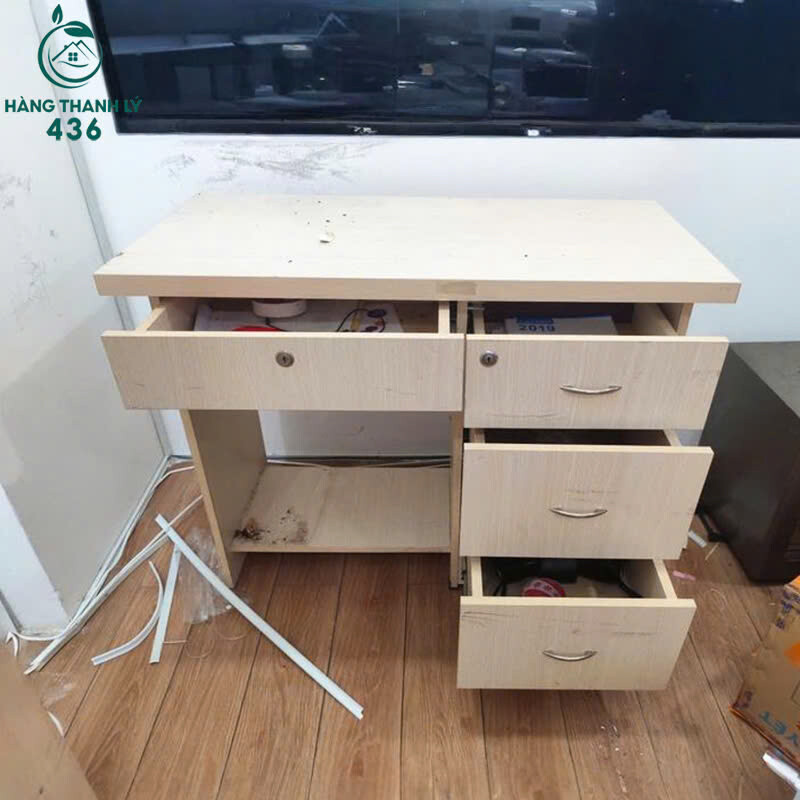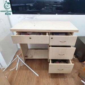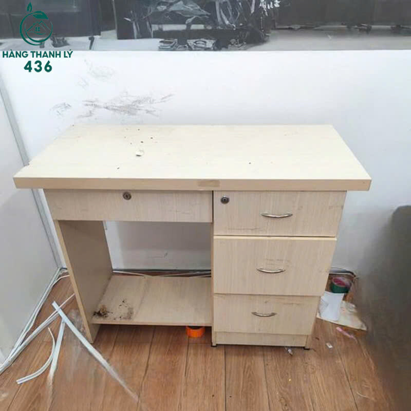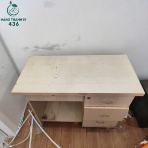 - Mô tả: Bàn làm việc cũ được làm từ gỗ sáng màu, mang lại cảm giác ấm áp và thân thiện cho không gian làm việc. Bàn có bốn ngăn kéo tiện lợi: một ngăn lớn bên trái và ba ngăn nhỏ xếp dọc bên phải, giúp lưu trữ tài liệu và vật dụng cá nhân gọn gàng. Mặt bàn rộng rãi, phù hợp để đặt máy tính, sách vở hoặc các thiết bị văn phòng. Dù đã qua sử dụng, bàn vẫn giữ được độ chắc chắn và tính thẩm mỹ. Đây là lựa chọn hợp lý cho những ai cần nội thất văn phòng chất lượng với chi phí tiết kiệm.
