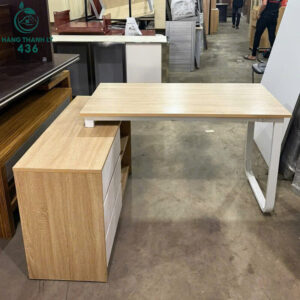Bàn Làm Việc Gỗ Cũ Kết Hợp 3 Hộc Tủ Màu Trắng Thiết Kế Hiện Đại
