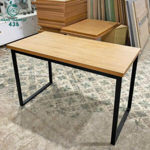 - Mô tả: Bàn làm việc với thiết kế khung chân kim loại vuông sơn tĩnh điện chắc chắn, chống gỉ sét, phù hợp sử dụng lâu dài. Mặt bàn gỗ màu vân gỗ, dễ lau chùi và hạn chế trầy xước. Kích thước bàn vừa phải, phù hợp dùng làm bàn làm việc tại văn phòng, bàn học tại nhà. Bàn có kiểu dáng đơn giản, gọn nhẹ, dễ kết hợp với nhiều loại ghế khác nhau. Đây là lựa chọn tối ưu cho doanh nghiệp cần trang bị nội thất văn phòng hoặc hộ gia đình muốn có bàn làm việc chắc chắn, giá hợp lý.