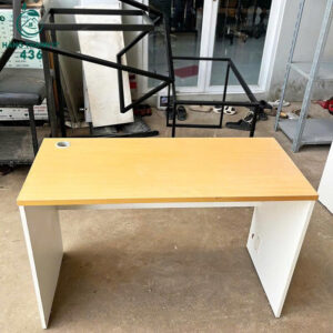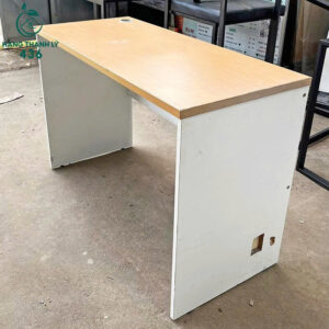 - Mô tả: Đây là một chiếc bàn làm việc cũ được làm từ gỗ công nghiệp bền đẹp, phù hợp với không gian văn phòng hoặc làm bàn học tại nhà. Bàn có thiết kế đơn giản nhưng chắc chắn, mặt bàn màu vân gỗ sáng kết hợp chân bàn màu trắng, mang lại cảm giác hiện đại và sạch sẽ. Bàn có kích thước vừa phải, không chiếm nhiều diện tích, dễ dàng đặt ở nhiều vị trí khác nhau. Đặc biệt, bàn còn được tích hợp sẵn lỗ luồn dây điện, giúp bạn kết nối máy tính hoặc các thiết bị điện tử khác một cách gọn gàng, không cần dây nhợ rườm rà.
