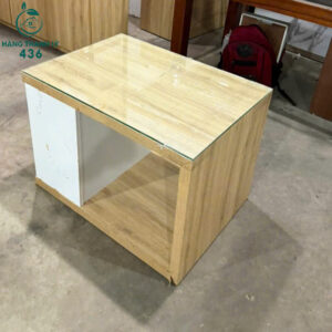 - Mô tả: Bàn sofa cũ với thiết kế tối giản nhưng không kém phần tinh tế, là lựa chọn lý tưởng cho không gian phòng khách. Mặt bàn được làm từ gỗ công nghiệp, với một phần kính trong suốt tạo sự hiện đại và sang trọng. Phần khung gỗ chắc chắn, kết hợp với các góc cạnh mềm mại giúp bàn ổn định và dễ dàng sử dụng. Sản phẩm đã qua sử dụng, còn mới khoảng 90%, mang lại giá trị sử dụng lâu dài với mức giá thanh lý hấp dẫn.