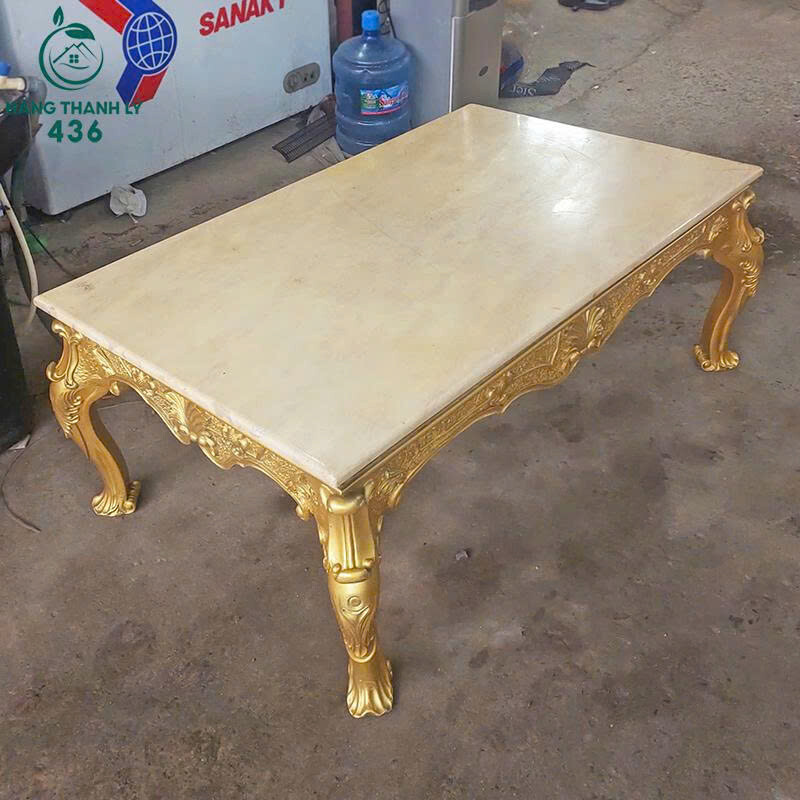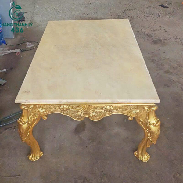 Bàn Sofa Cũ Mặt Đá Chân Vàng Phong Cách Hoàng Gia