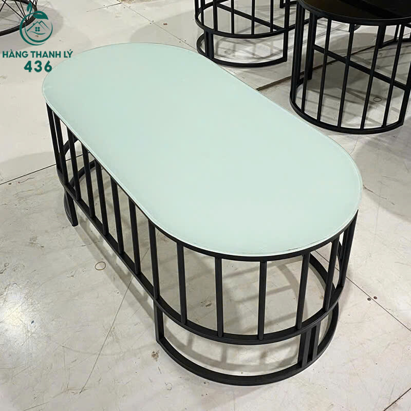 - Mô tả: Mẫu bàn sofa kính xanh cũ này có thiết kế bầu dục dài, tạo cảm giác mềm mại và dễ phối với nhiều kiểu sofa khác nhau. Phần mặt kính xanh nhạt nhìn rất sáng, sạch và mang lại cảm giác mát mắt cho không gian. Khung sắt đen dáng cong được chia thành nhiều thanh đứng song song giúp bàn đứng rất vững và không rung lắc. Dáng bàn gọn, phù hợp phòng khách nhỏ, quán cafe hoặc salon làm đẹp. Mặt kính dễ lau chùi và hạn chế bám dấu vân tay.