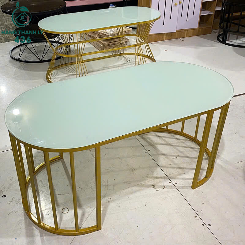 - Mô tả: Mẫu bàn sofa kính xanh cũ này có thiết kế bầu dục dài đẹp mắt, thích hợp đặt trong phòng khách, phòng tiếp khách hoặc quán cafe nhỏ. Phần khung sắt vàng tạo cảm giác sang và nổi bật, còn mặt kính xanh giúp không gian nhìn sáng và sạch hơn. Dáng bàn mảnh, dễ phối cùng sofa vải, sofa da hoặc ghế decor. Khung sắt được uốn cong đều hai bên nên bàn đứng rất chắc chắn, không rung lắc khi sử dụng. Mặt kính dễ lau chùi và ít bám bẩn.