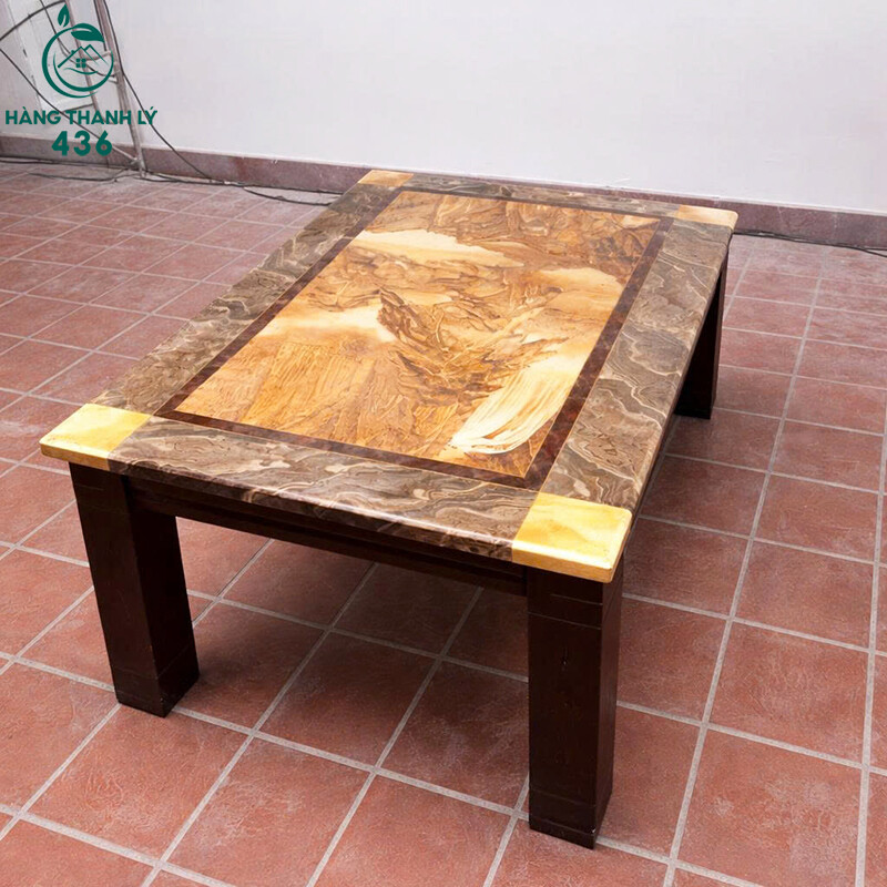 Mô tả: Bàn sofa thiết kế đẹp mắt với mặt đá sáng bóng, dễ dàng vệ sinh, bền bỉ theo thời gian. Chân bàn được làm từ gỗ công nghiệp MDF chắc chắn, giúp bàn không bị lung lay khi sử dụng lâu dài. Mặt đá có màu sắc tinh tế, phù hợp cho phòng khách gia đình hoặc không gian công sở. Kích thước bàn vừa phải, phù hợp cho việc tiếp khách hoặc làm việc. Tình trạng sản phẩm còn mới khoảng 90%, vẫn rất chắc chắn và sử dụng lâu dài.