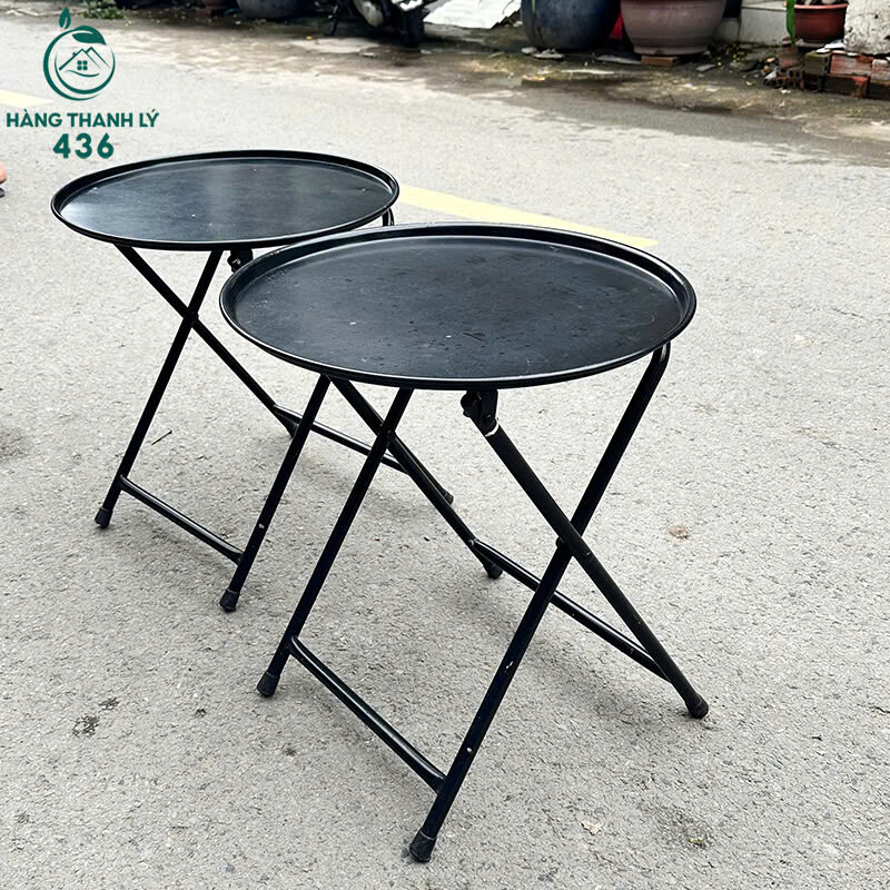 Bàn Trà Chanh Cũ Màu Đen Chân Xếp Gấp Gọn Bền Đẹp
